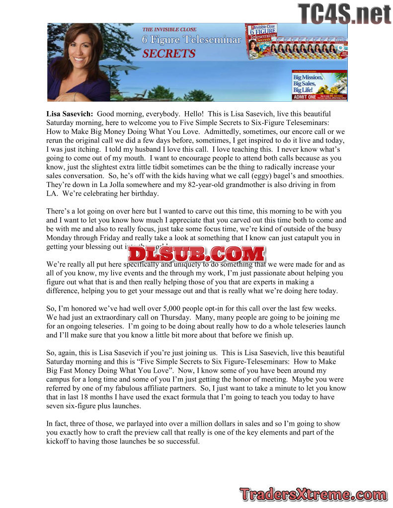 Lisa Sasevich 6 Figure Teleseminar Secrets