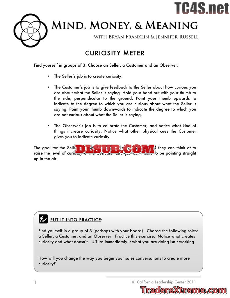 Bryan Franklin Sales Process 6 Curiosity Meter Worksheet - JPG Image File