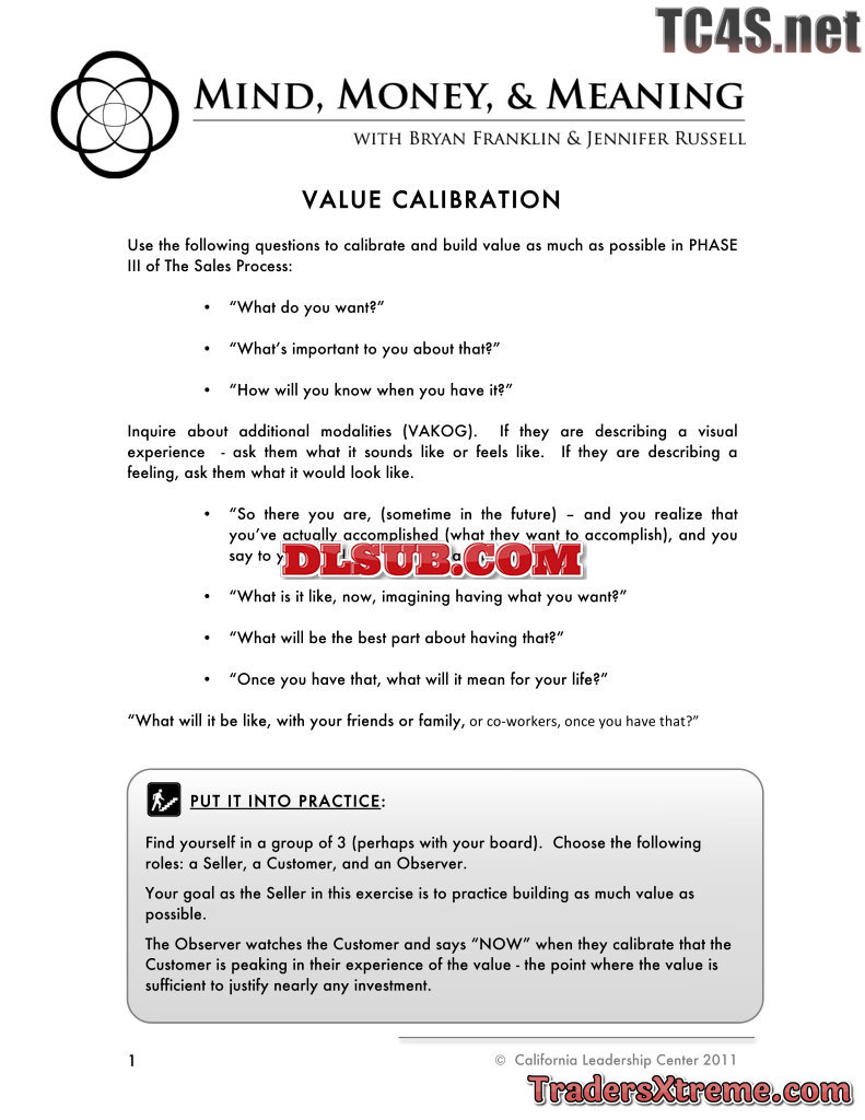 Bryan Franklin Sales Process 7 Value Calibration Worksheet - JPG Image File
