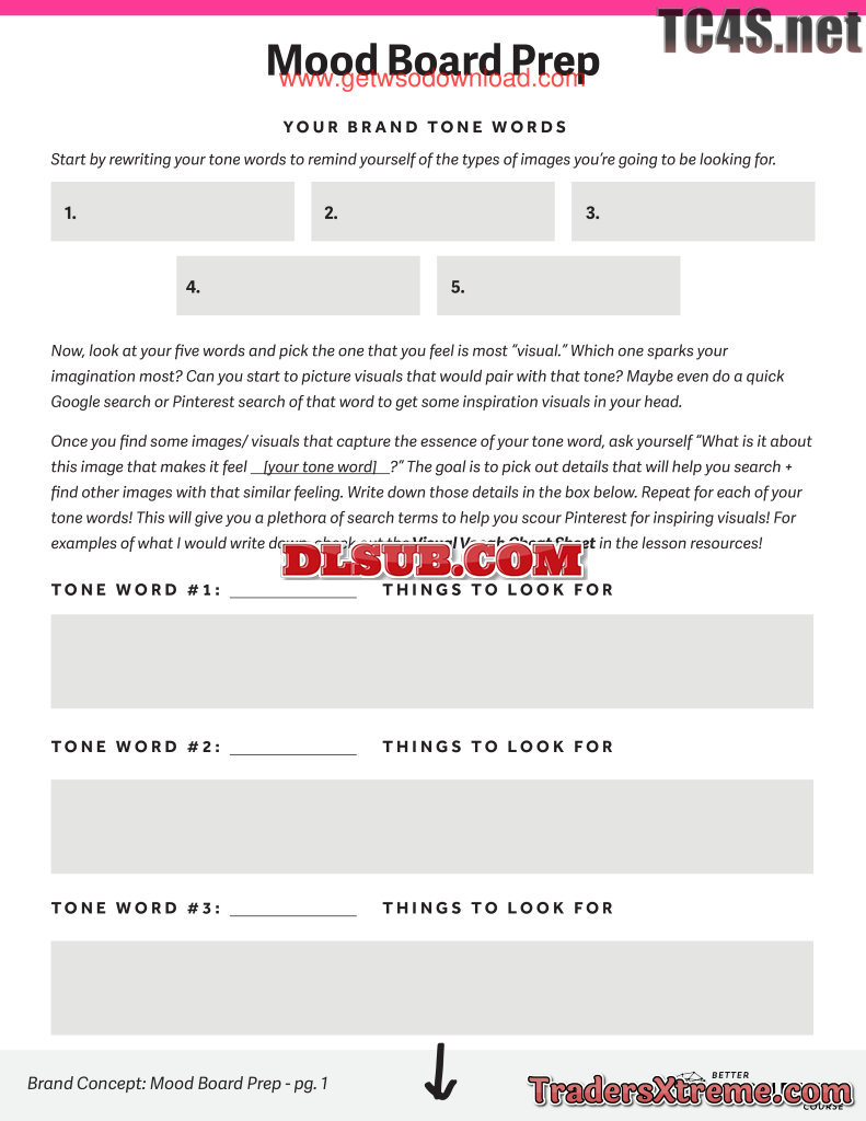 4 Worksheet Mood Board Prep Editable - JPG Image File
