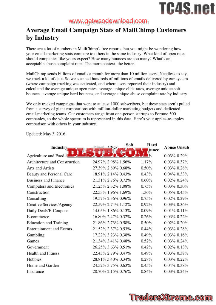 14 7 Average Email Campaign Stats Of Mailchimp Customers By Industry - JPG Image File