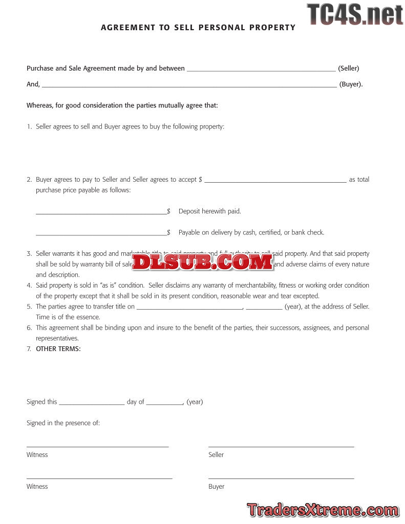 Agreement To Sell Personal Property - JPG Image File