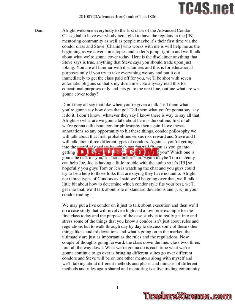 1b Advanced Iron Condor Class 1 Transcript - JPG Image File