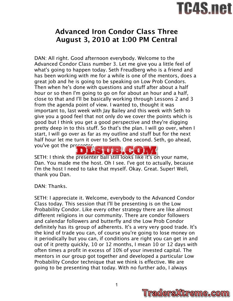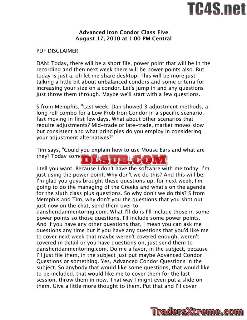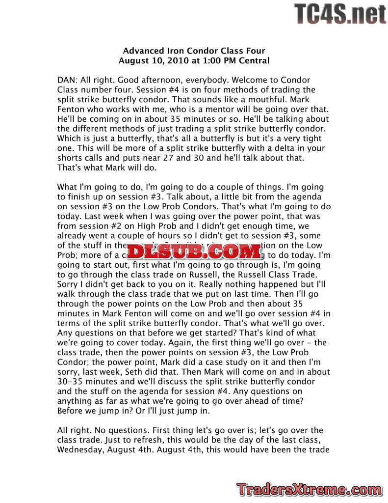 4b Advanced Iron Condor Class 4 Transcript - JPG Image File