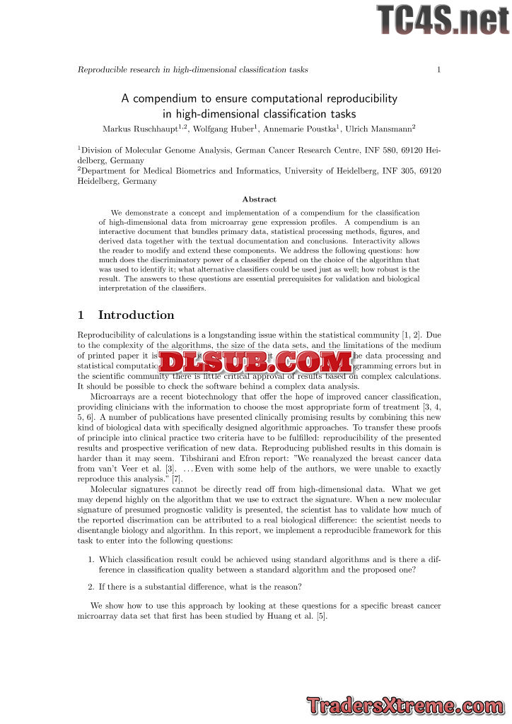 M Ruschhaupt A Compendium To Ensure Computational Reproducibility In High Dimensional Classification Tasks