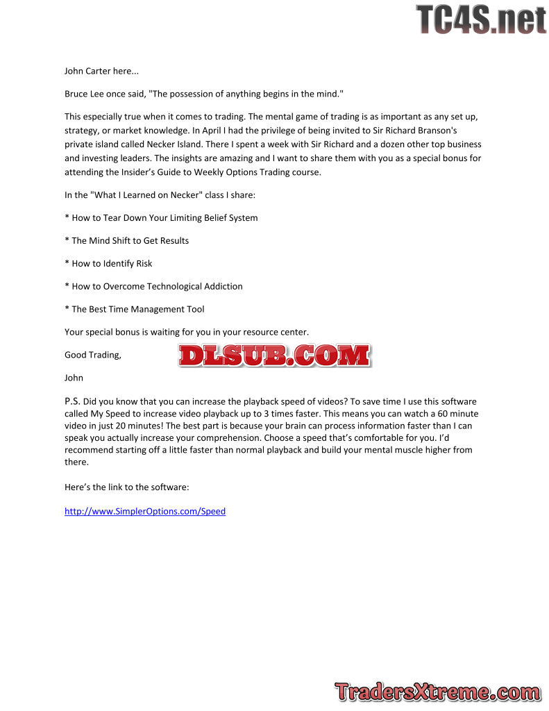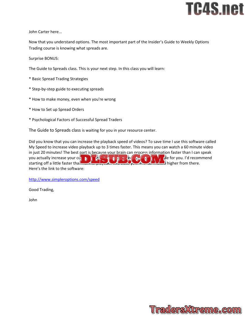 John Carter Simpleroptions Insiders Guide To Trading Weekly Options Strategies Class Usd 749